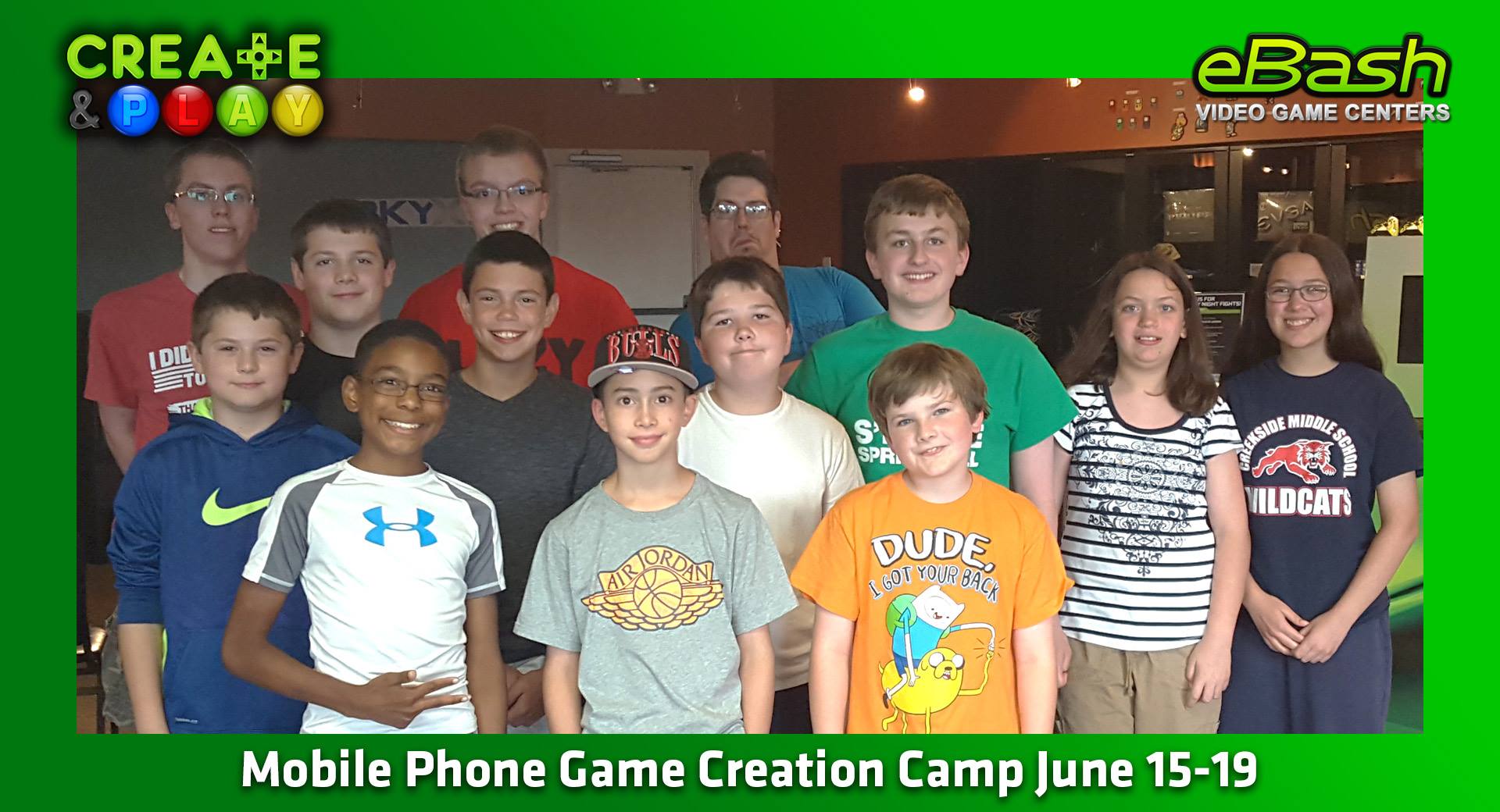 Students for our camps range in age from 8-16 depending on the course material.  This group built their own mobile games during their week at camp!