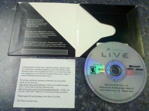 We were running an ISP at the time and basically had T1 connections at our homes and I think that is why I was selected.  They had 5000 people around the US on the service to start and I think Chad was able to get in the 3rd or 4th round of adding beta testers.  The pictures you see here are examples of what was sent to me.  As you can see some of the stuff is pretty amazing like the disc with the LIVE software on it labeled as version 1.0.  I don’t think you can get much more first generation than that!