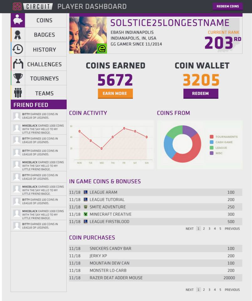 Here is a screenshot of the player dashboard to monitor their coin progress in the LAN center.